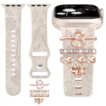 Floral Engraved Silicone Band with Charms for Apple Watch