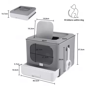 Foldable Top-Entry Cat Litter Box with Odor-Control Filter & Scoop Drawer