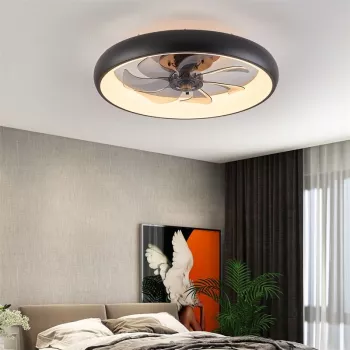 Modern Black LED Ceiling Fan with Dimmable Chandelier