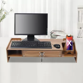 Wooden Desk Organizer with Drawer & Monitor Riser
