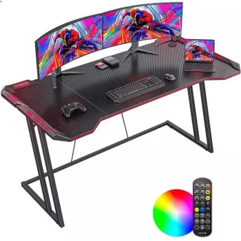 Z-Shaped 55" Gaming Desk with Carbon Fiber Surface and LED Lighting